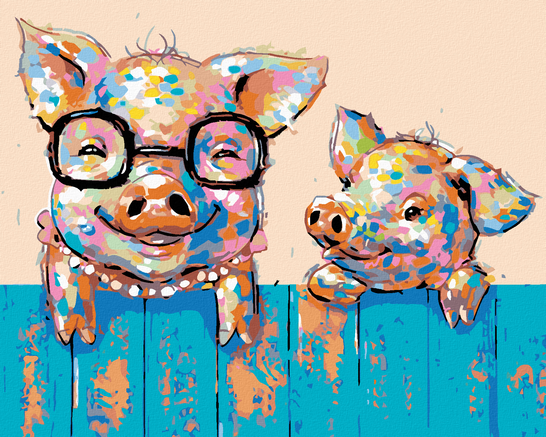 диамантени гоблени - ПРАСЕ С ОЧИЛА И ПРАСЕНЦЕ