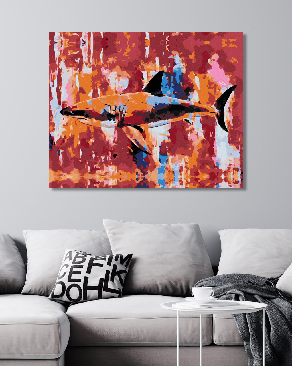 диамантени гоблени - АКУЛА НА АБСТРАКТЕН ФОН
