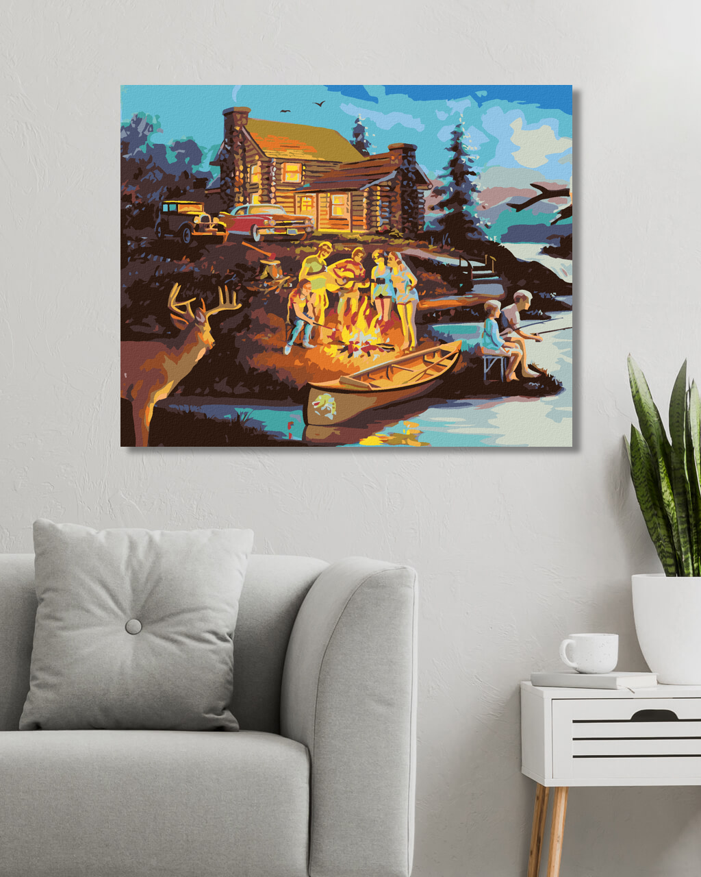 диамантени гоблени - ЛАГЕРЕН ОГЪН ВЪВ ВИЛАТА, ЕЛЕН И БУХАЛ (Д. РЪСТИ РЪСТ)