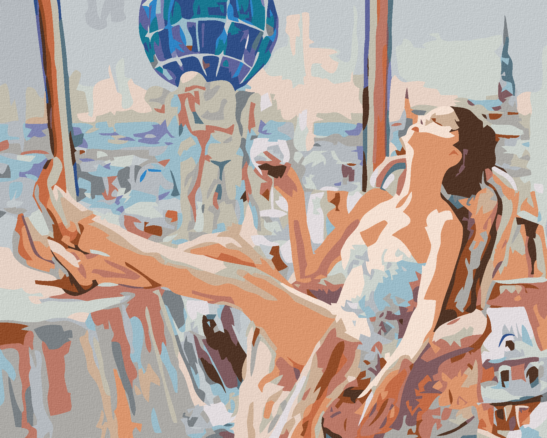 диамантени гоблени - ЖЕНА, ПОЧИВАЩА СИ С ЧАША ВИНО