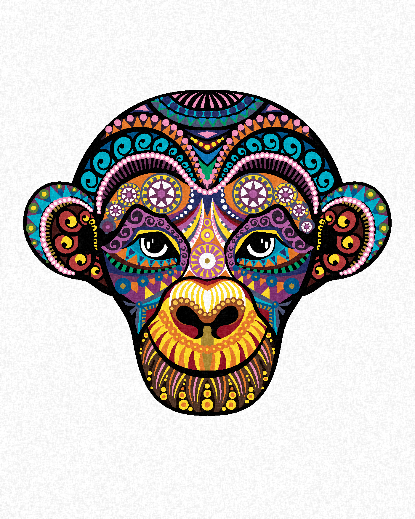 диамантени гоблени - АБСТРАКТНА ЦВЕТНА МАЙМУНА НА БЯЛ ФОН