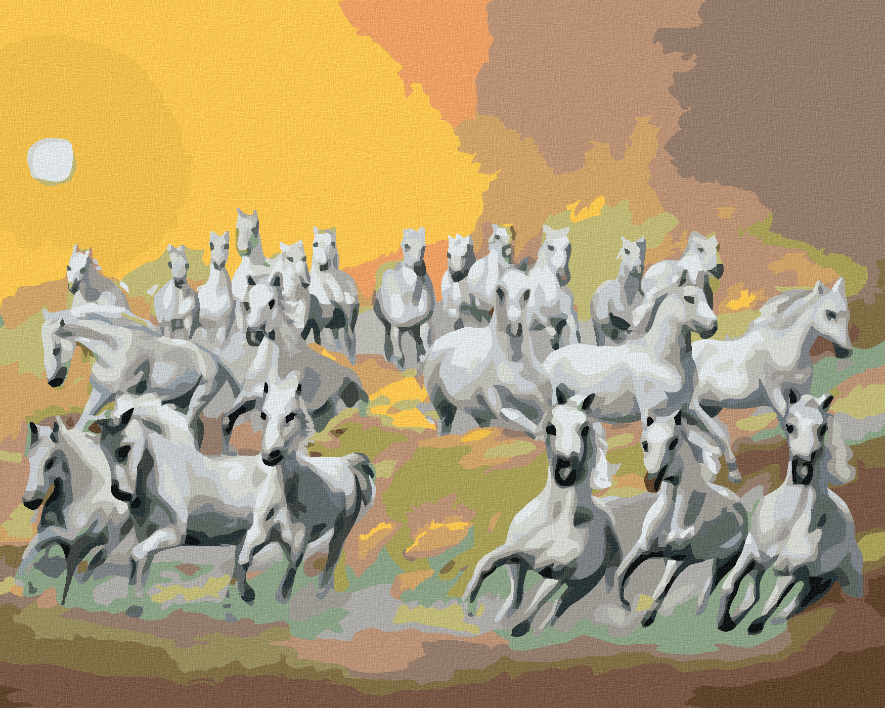 диамантени гоблени - БЕЛИ КОНЕ В ОБЛАЦИТЕ И СЛЪНЦЕТО (Д. РЪСТИ РЪСТ)