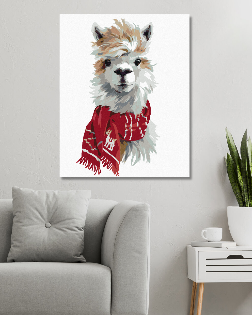 диамантени гоблени - ЛАМА С ЧЕРВЕН ШАЛ