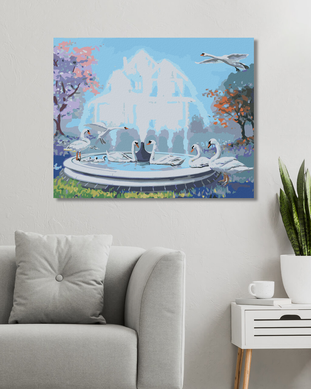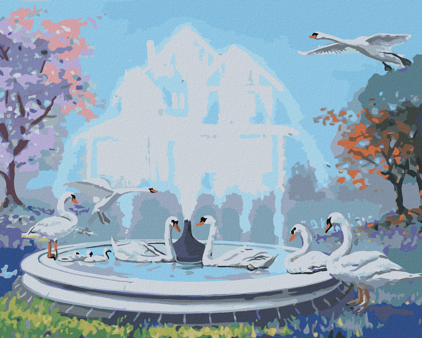 диамантени гоблени - ЛЕБЕДИ И ФОНТАН (Д. РЪСТИ РЪСТ)