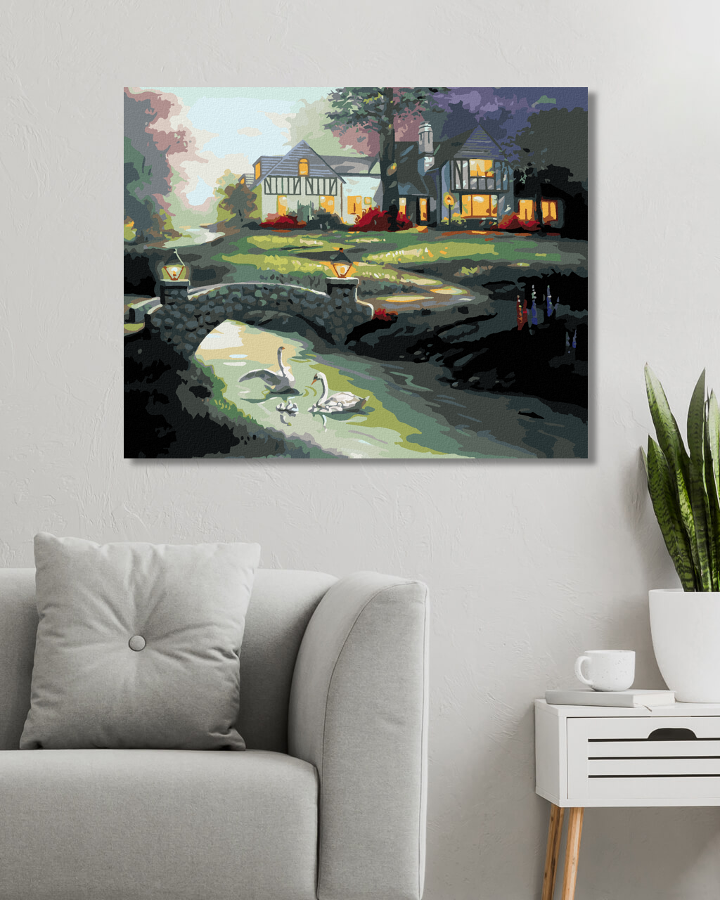 диамантени гоблени - ЛЕБЕДИ НА РЕКАТА И КЪЩАТА (Д. РЪСТИ РЪСТ)