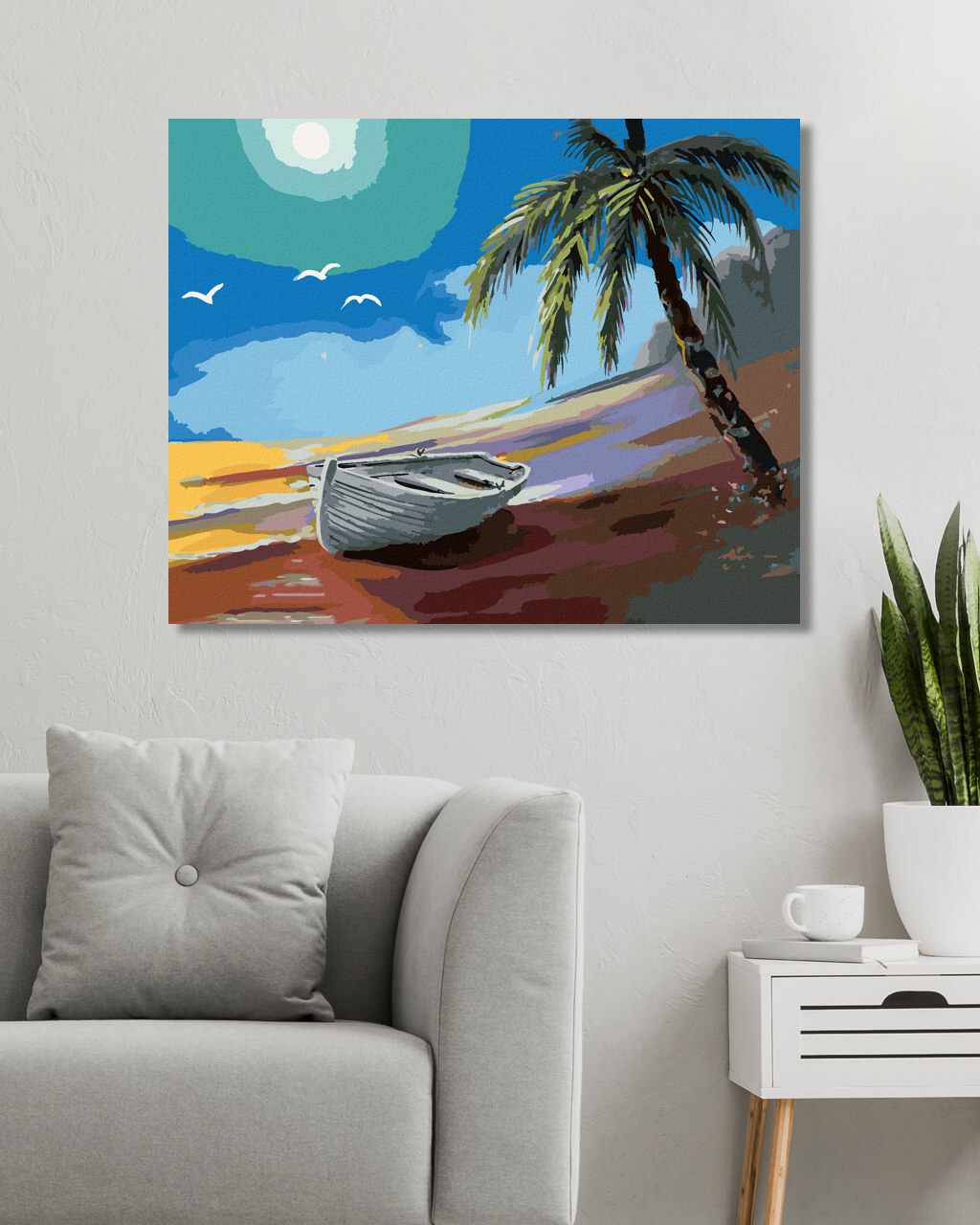 диамантени гоблени - ЛОДКА ДО БРЕГА И ПАЛМОВО ДЪРВО (Д. РЪСТИ РЪСТ)