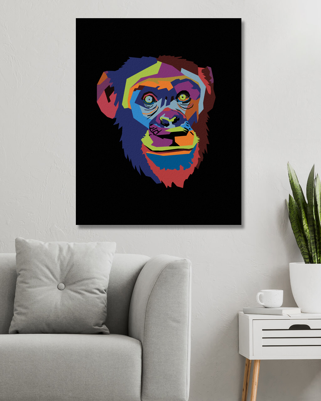 диамантени гоблени - ПОП АРТ МАЙМУНА НА ЧЕРЕН ФОН