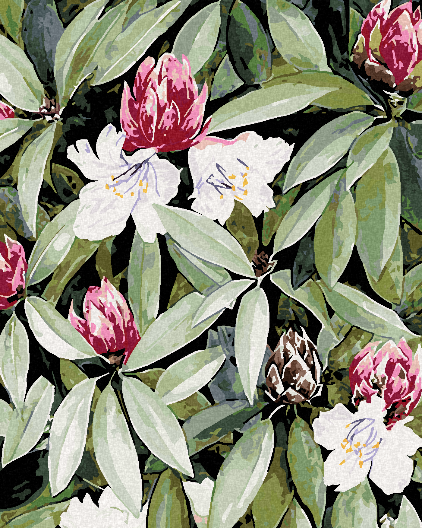 диамантени гоблени - РОДОДЕНДРОН С БЕЛИ И РОЗОВИ ЦВЕТОВЕ (АЛЕКСАНДРИЯ ГИЛБЪРТ)