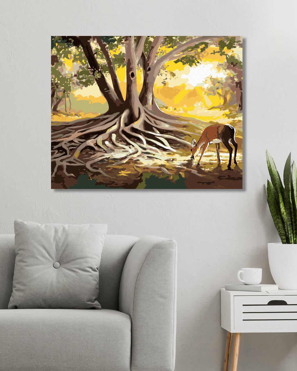 диамантени гоблени - СЪРНА ПРИ КОРЕНА НА ДЪРВО (Д. РЪСТИ РЪСТ)