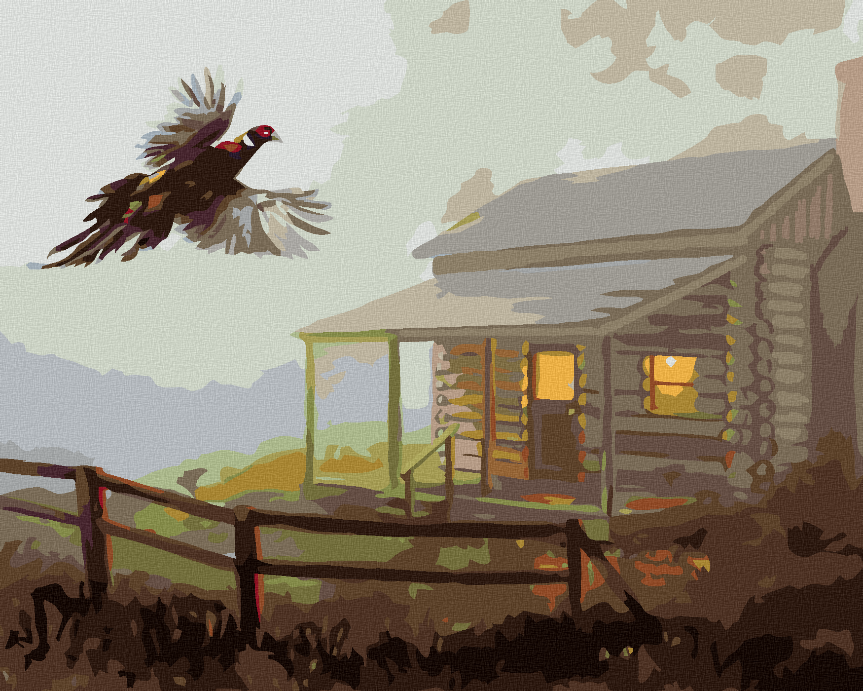 диамантени гоблени - ФАЗАН И КЪЩА В МЪГЛА (Д. РЪСТИ РЪСТ)