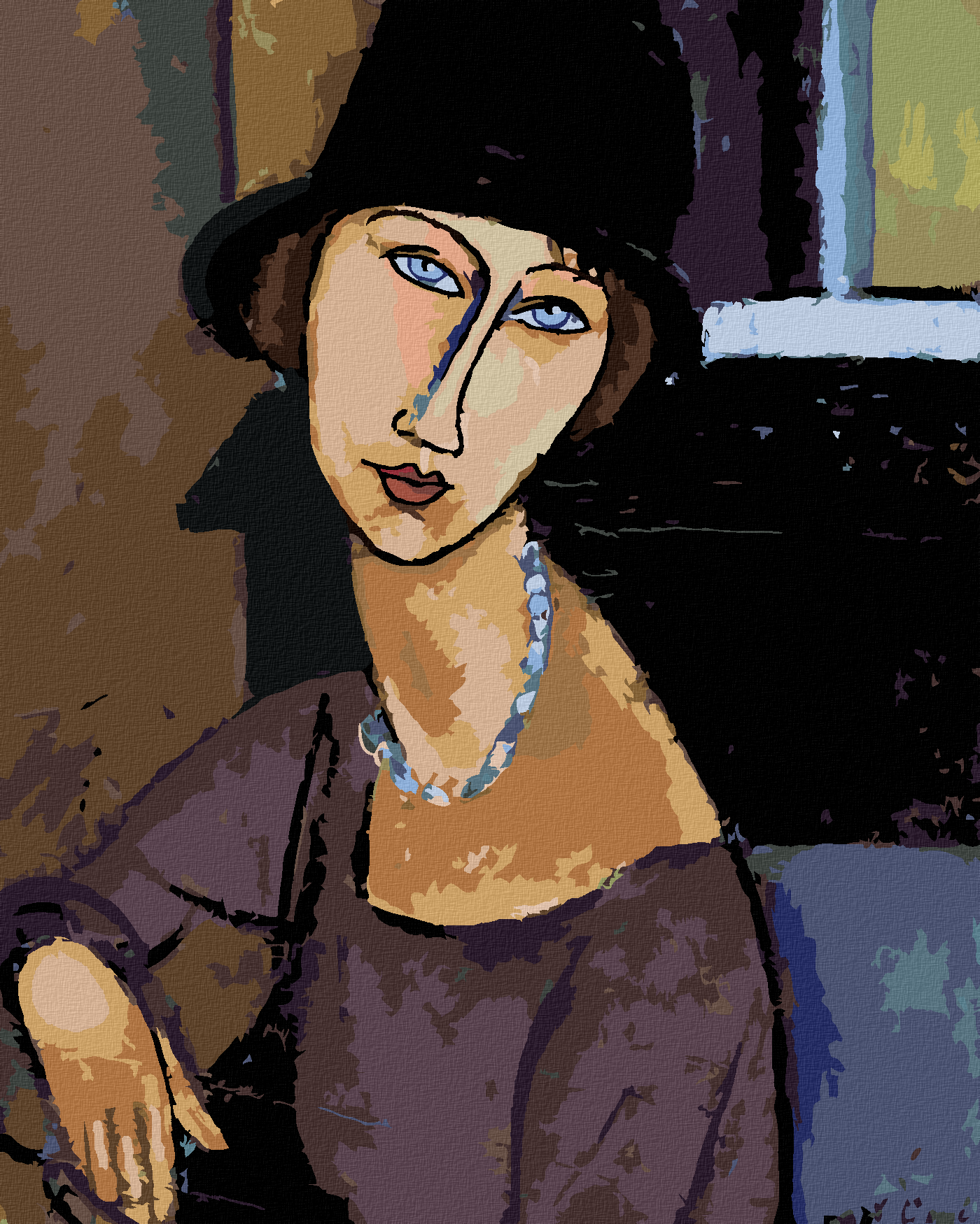 диамантени гоблени - ЖАНА ЕБЮТЕРН С ШАПКА И ОГЪРЛИЦА (АМЕДЕО МОДИЛИАНИ)