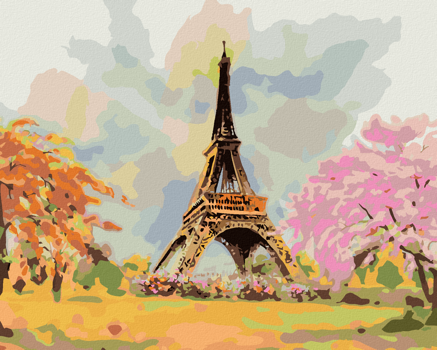 диамантени гоблени - АЙФЕЛОВАТА КУЛА И РОЗОВО ДЪРВО