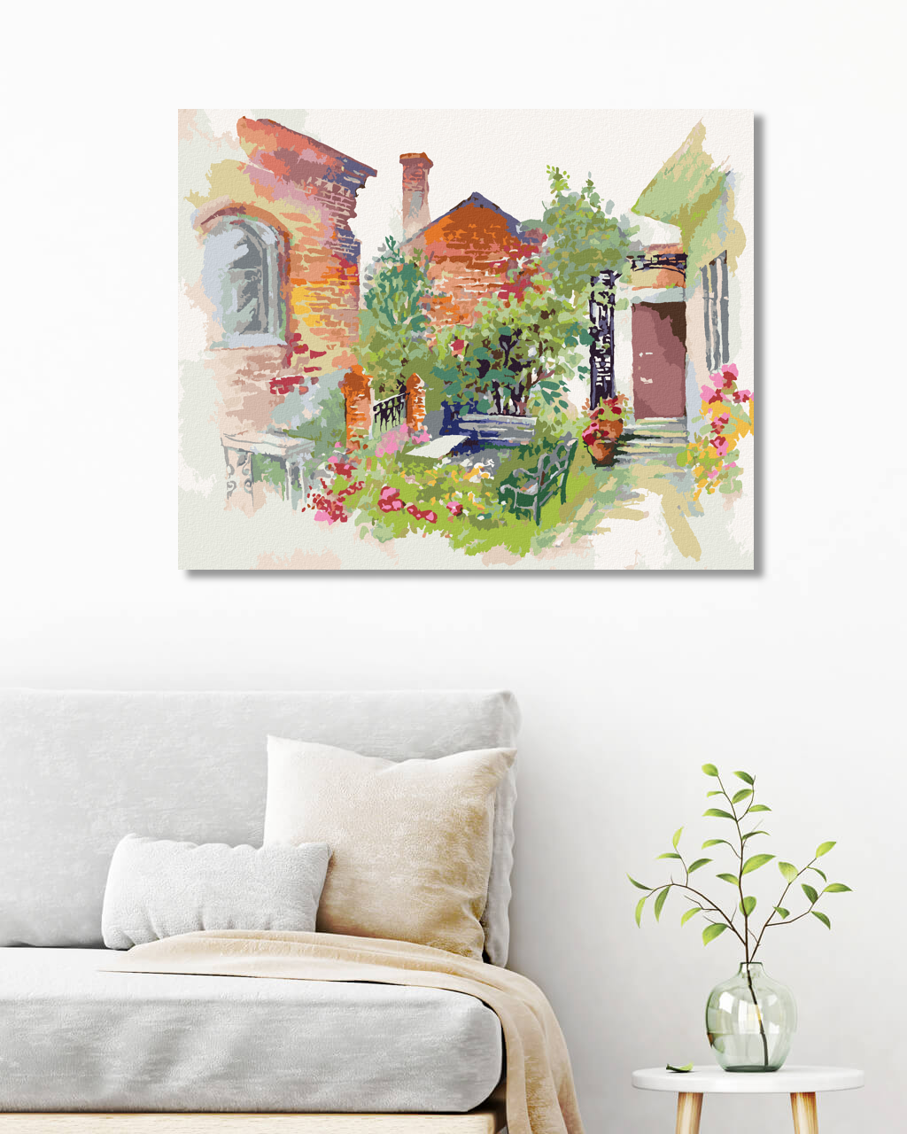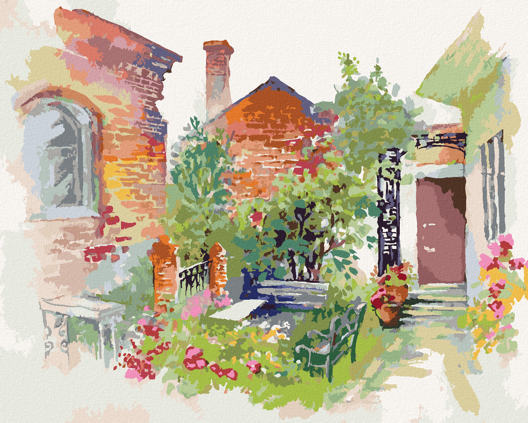 диамантени гоблени - ЕВРОПЕЙСКИ ПЕЙЗАЖ С КЪЩИ И ЦВЕТЯ