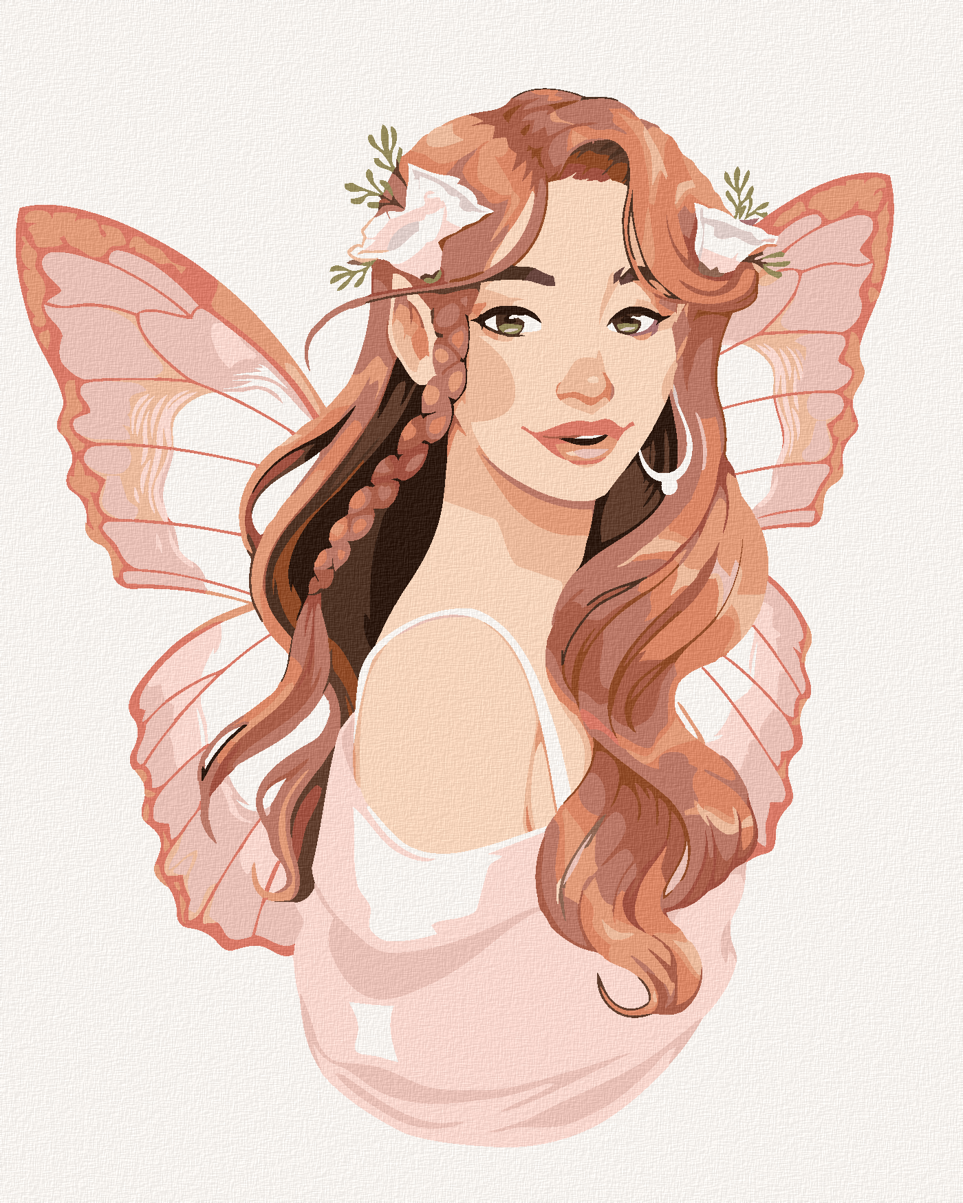 диамантени гоблени - РОЗОВА ЖЕНА С ПЕПЕРУДЕНИ КРИЛЕ