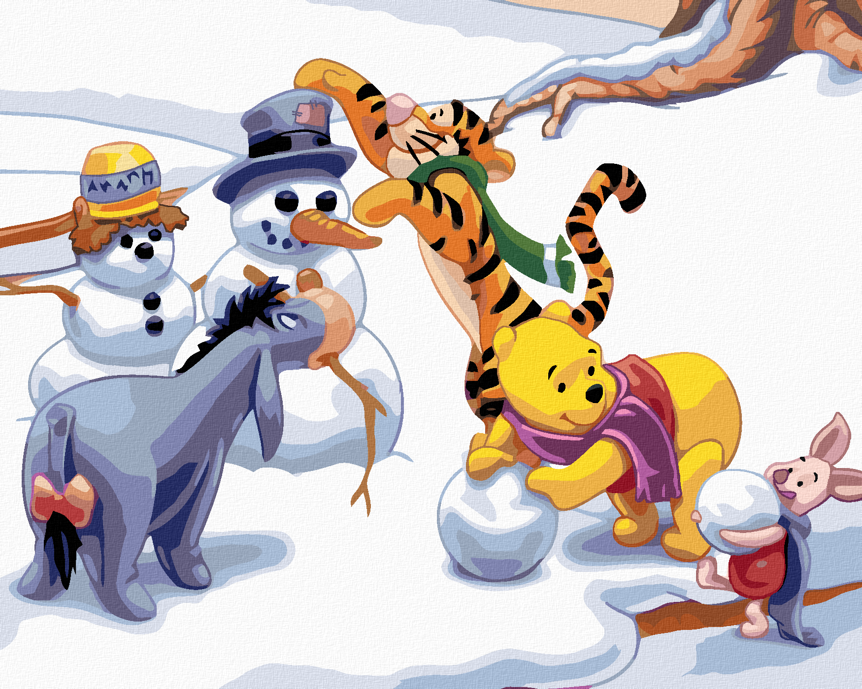 диамантени гоблени - МЕЧО ПУХ И ПРИЯТЕЛИ ПРАВЯТ СНЕЖНИ ЧОВЕЦИ
