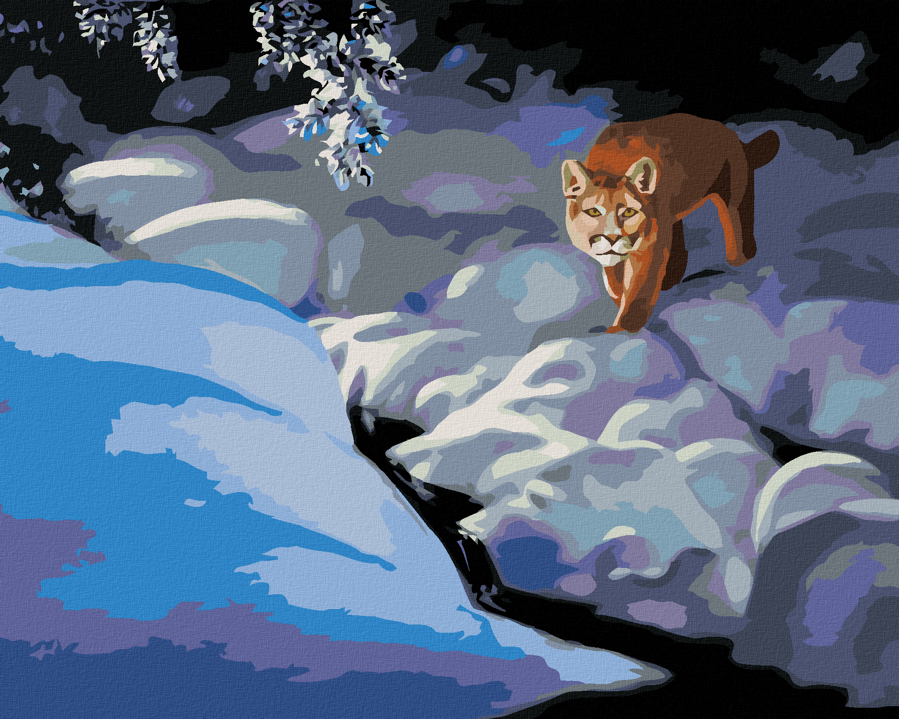 диамантени гоблени - ПУМА В СНЕГА И РЕКА (Д. РЪСТИ РЪСТ)