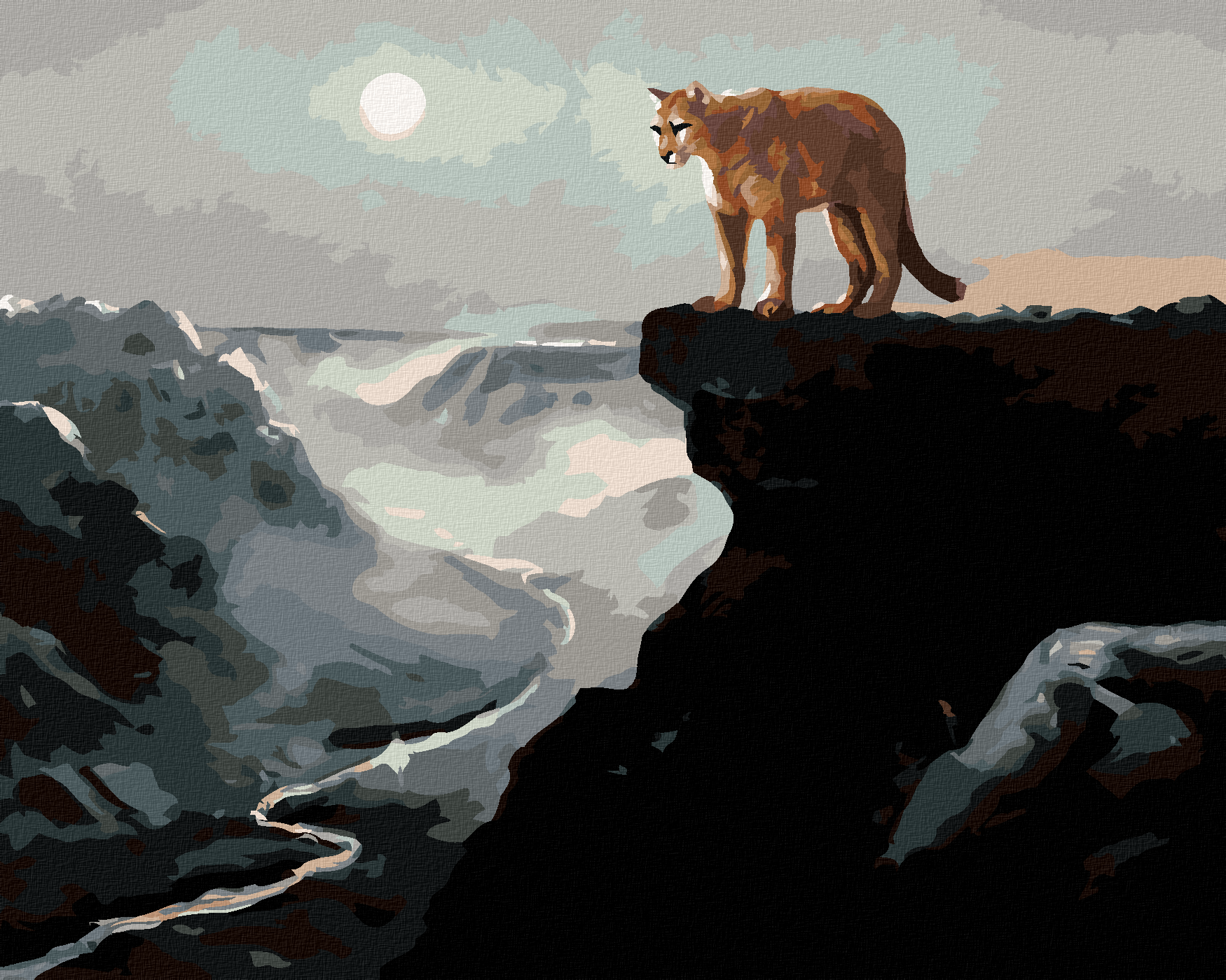диамантени гоблени - ПУМА НА СКАЛА, РЕКА В ДОЛИНА И ЛУНА (Д. РЪСТИ РЪСТ)