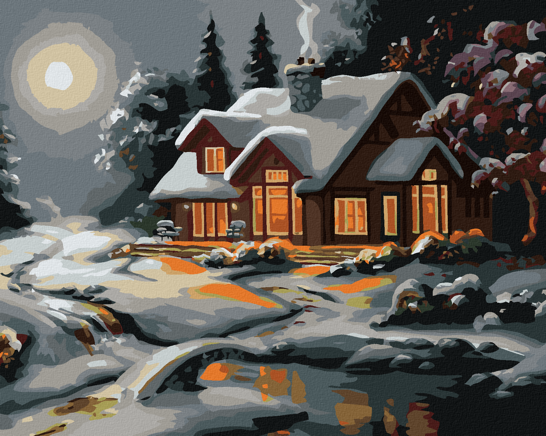 диамантени гоблени - СНЕЖНА КЪЩА СЛЕД СМРАЧАВАНЕ (Д. РЪСТИ РЪСТ)