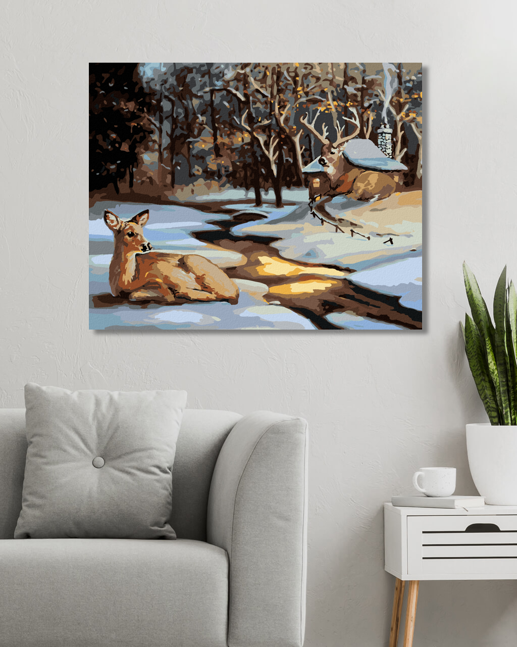 диамантени гоблени - СЪРНА И ЕЛЕН ДО СНЕЖНА КЪЩА (Д. РЪСТИ РЪСТ)