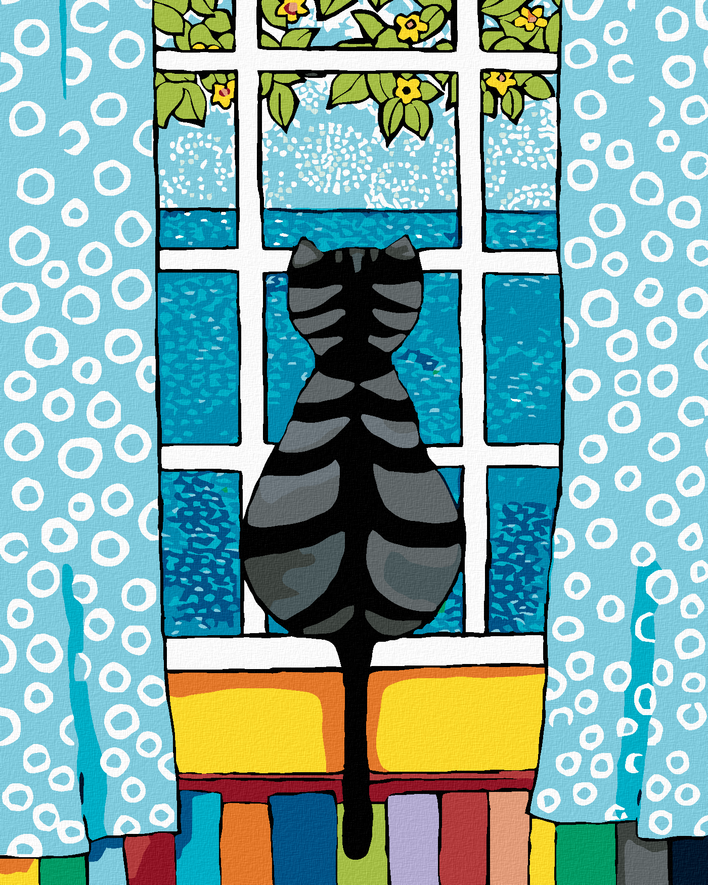 диамантени гоблени - КОТКА НА ПРОЗОРЕЦА