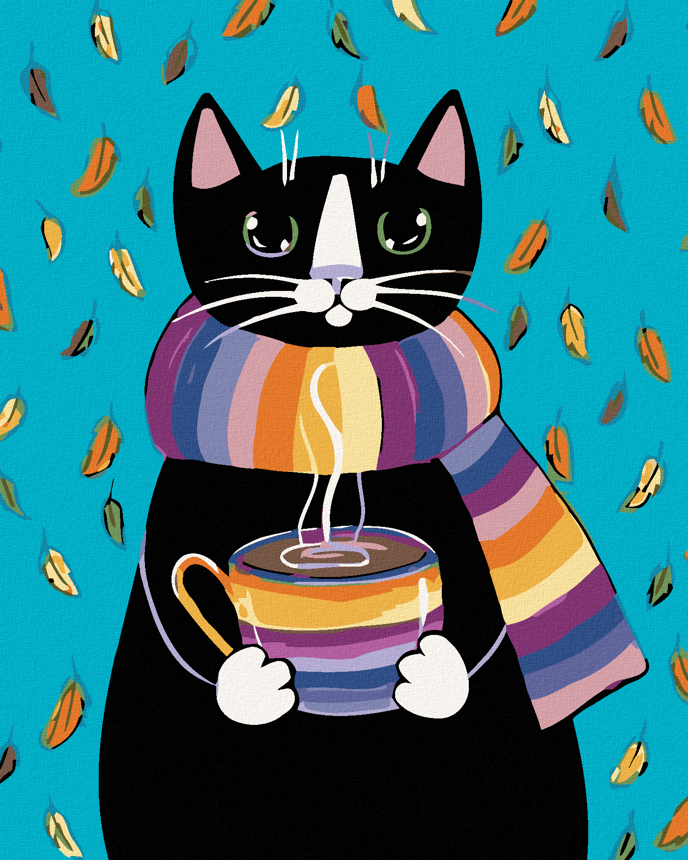 диамантени гоблени - КОТКА С ШАЛ НА РАЙЕТА