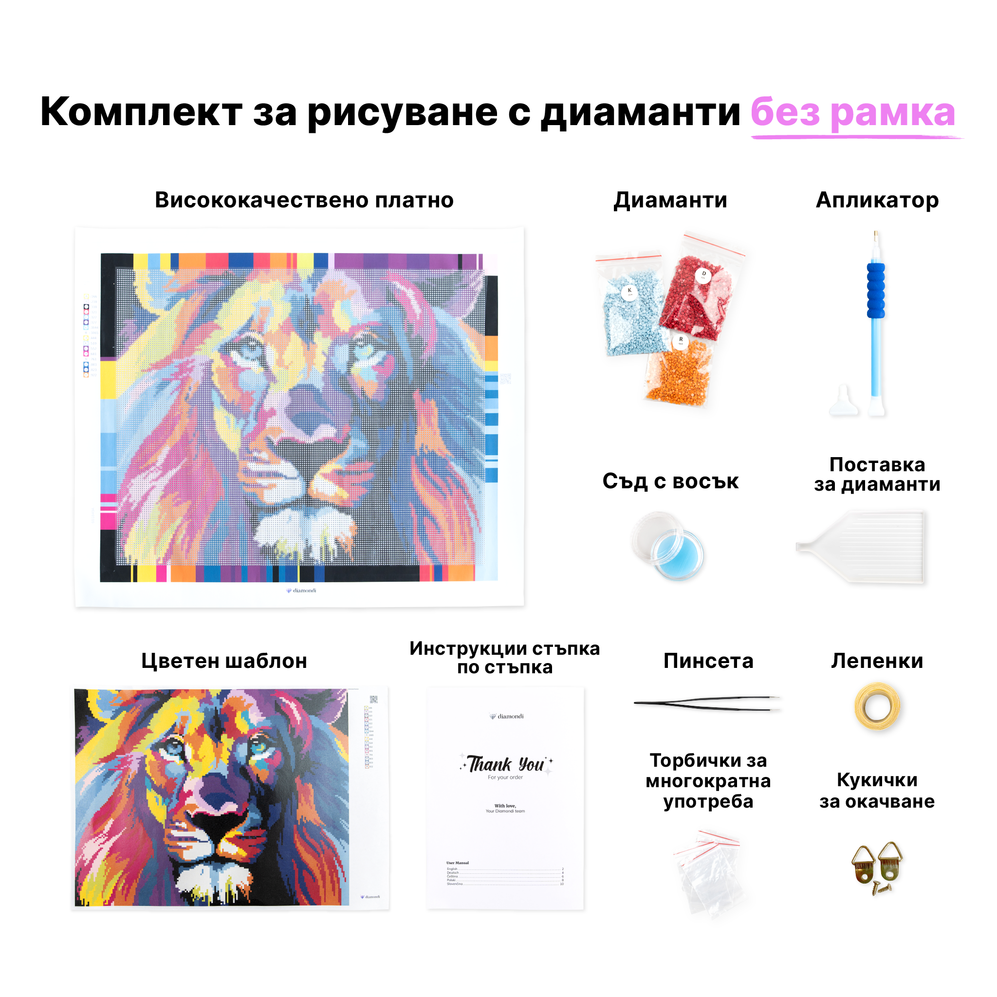 • Нашият комплект съдържа всичко необходимо за създаване на Вашите картини