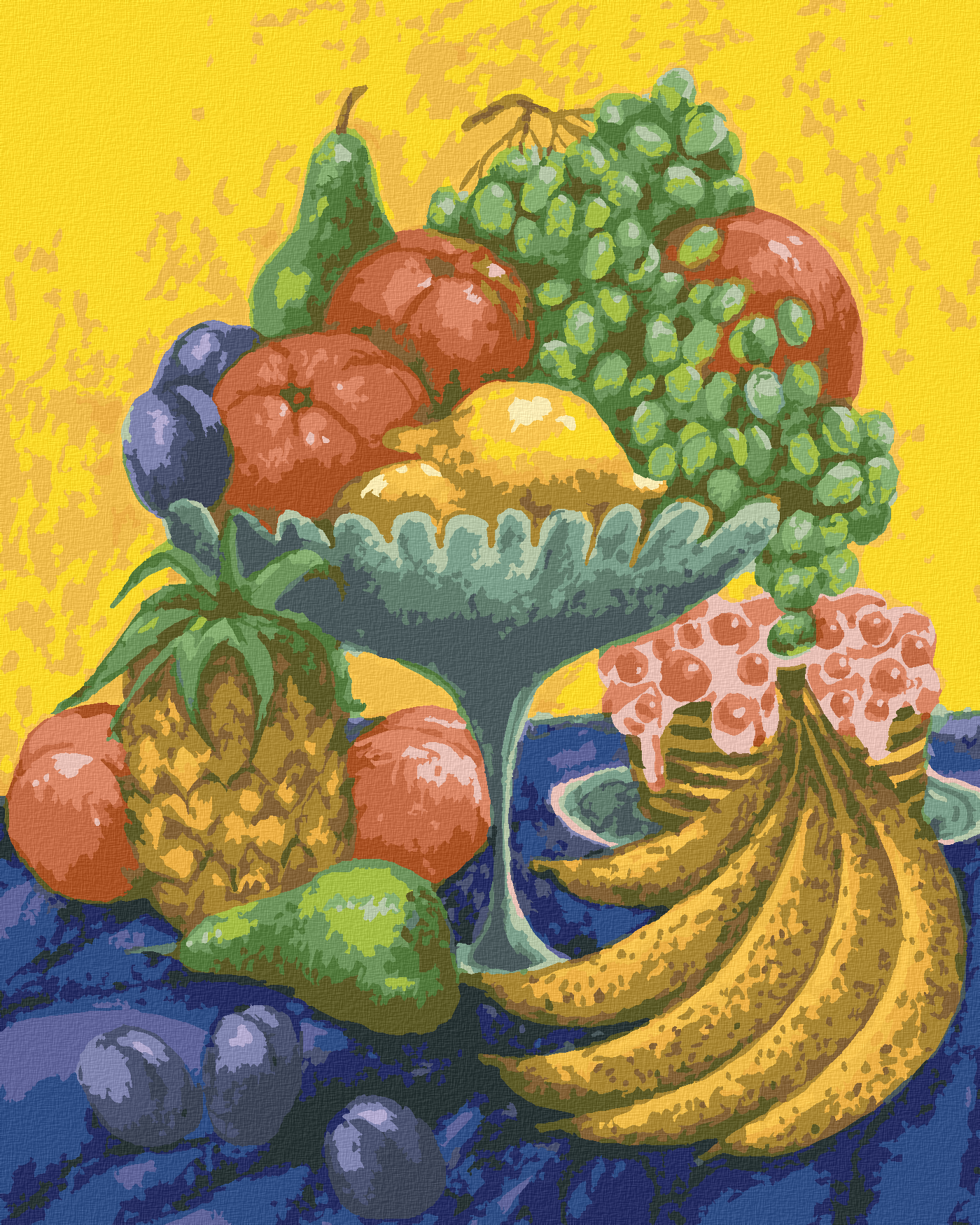диамантени гоблени - НАТЮРМОРТ С ПЛОДОВЕ НА ЖЪЛТО-СИН ФОН