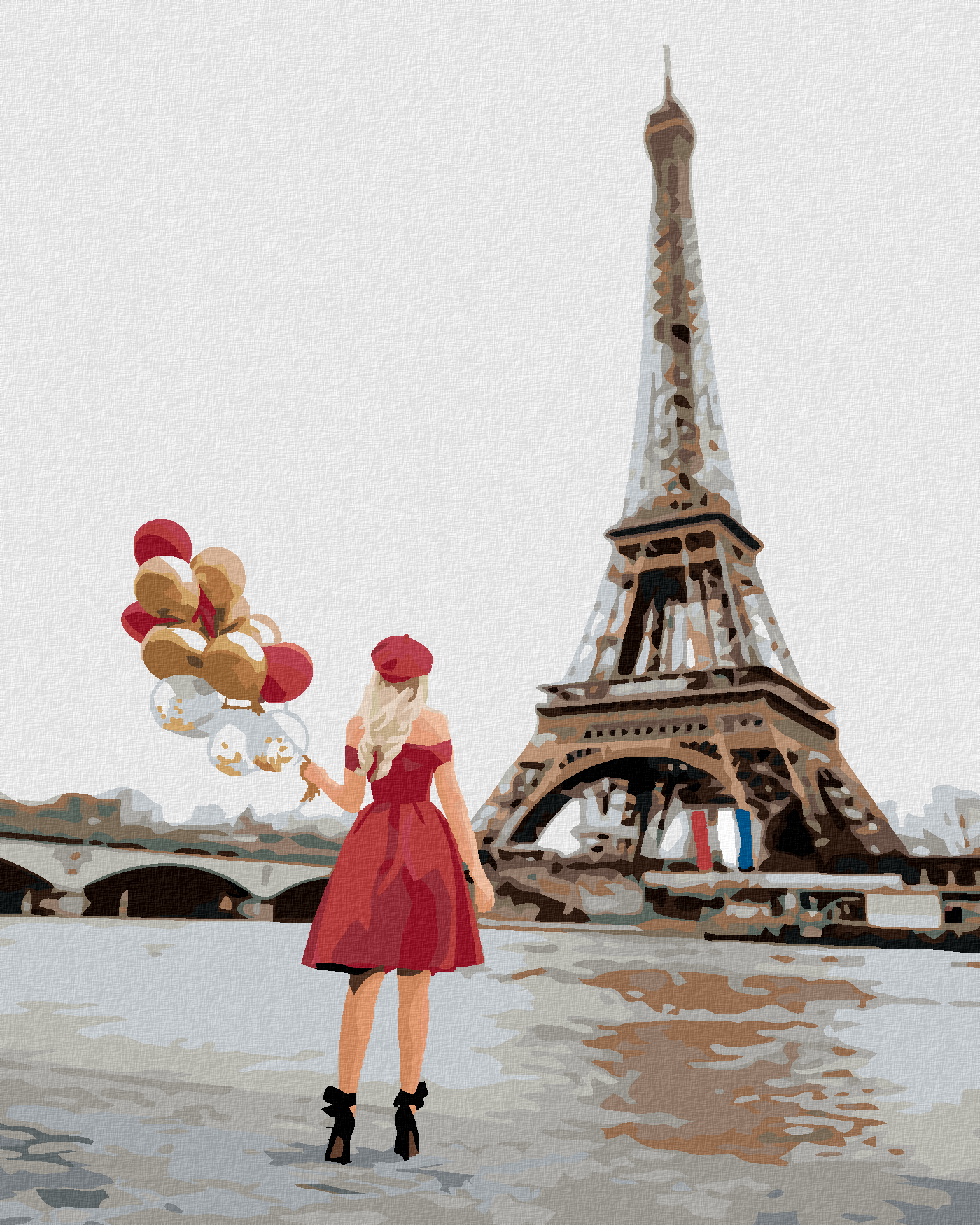 диамантени гоблени - АЙФЕЛОВАТА КУЛА И ЖЕНА С БАЛОНИ
