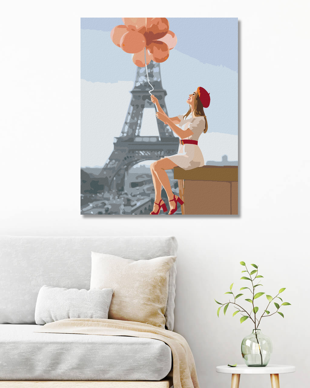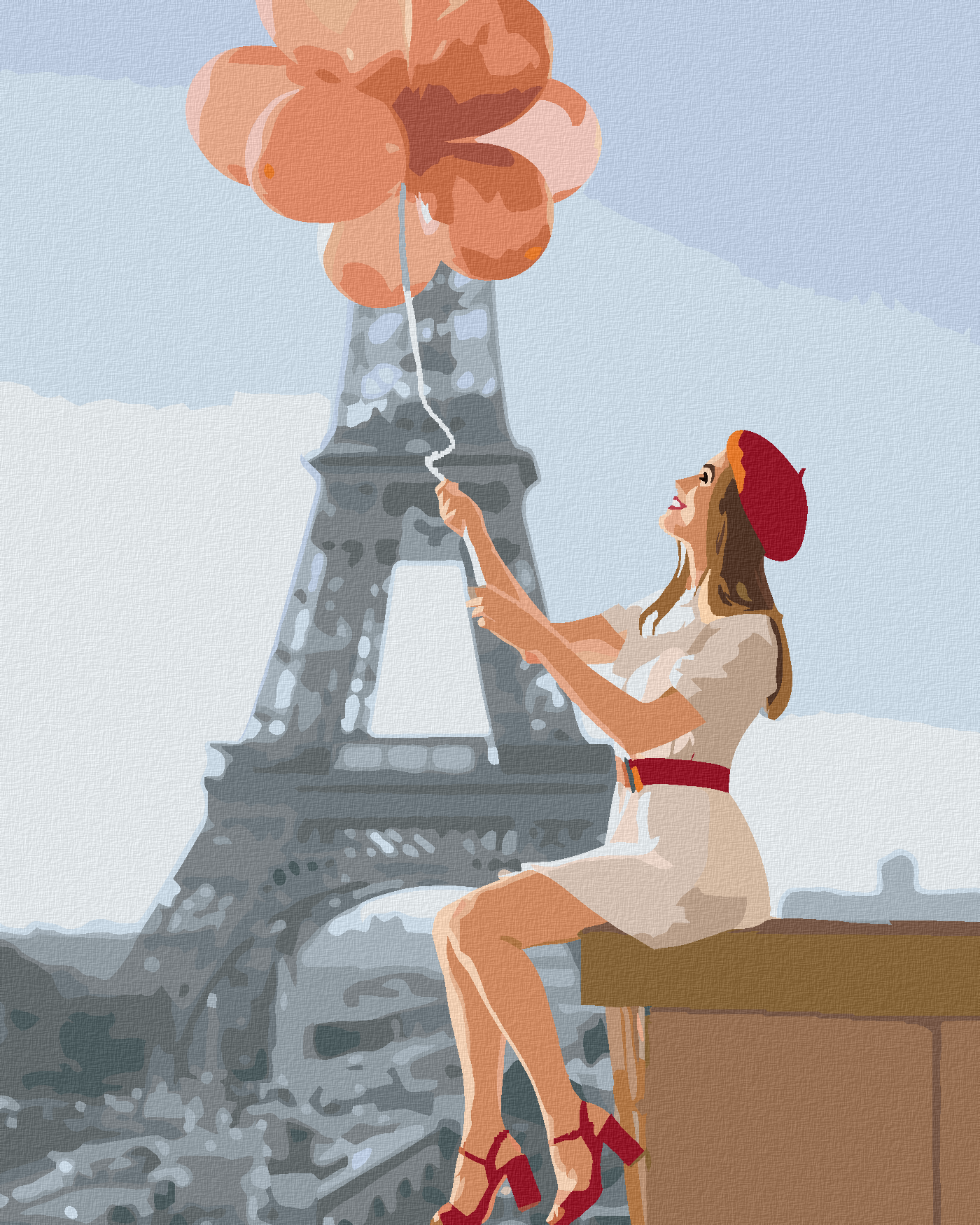 диамантени гоблени - АЙФЕЛОВАТА КУЛА И ЖЕНА С ЧЕРВЕНИ БАЛОНИ