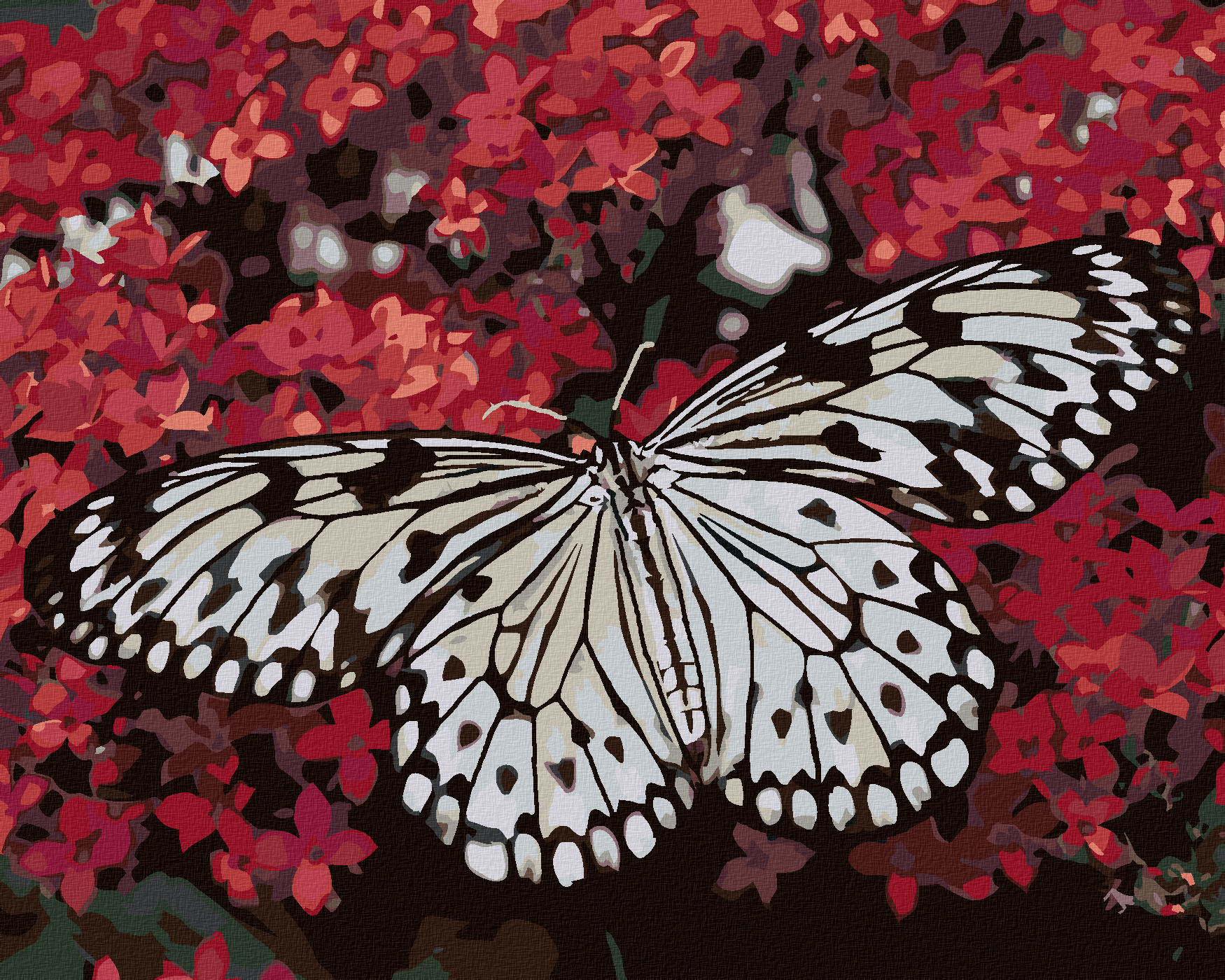 диамантени гоблени - БЯЛА ПЕПЕРУДА И ЧЕРВЕНИ ЦВЕТЯ