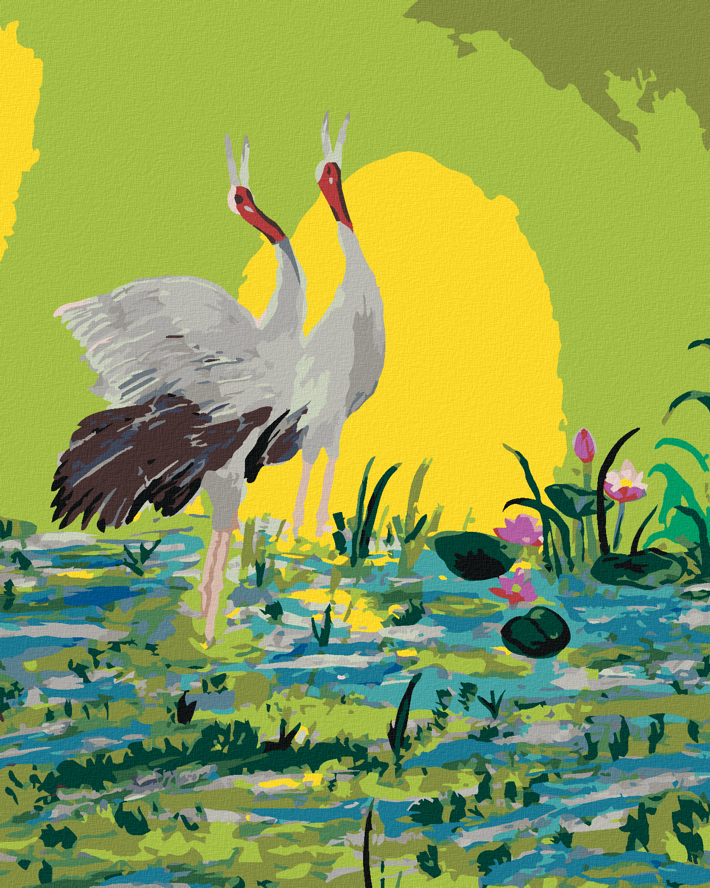 диамантени гоблени - ДВА ЖЕРАВА НА ЗЕЛЕН ФОН
