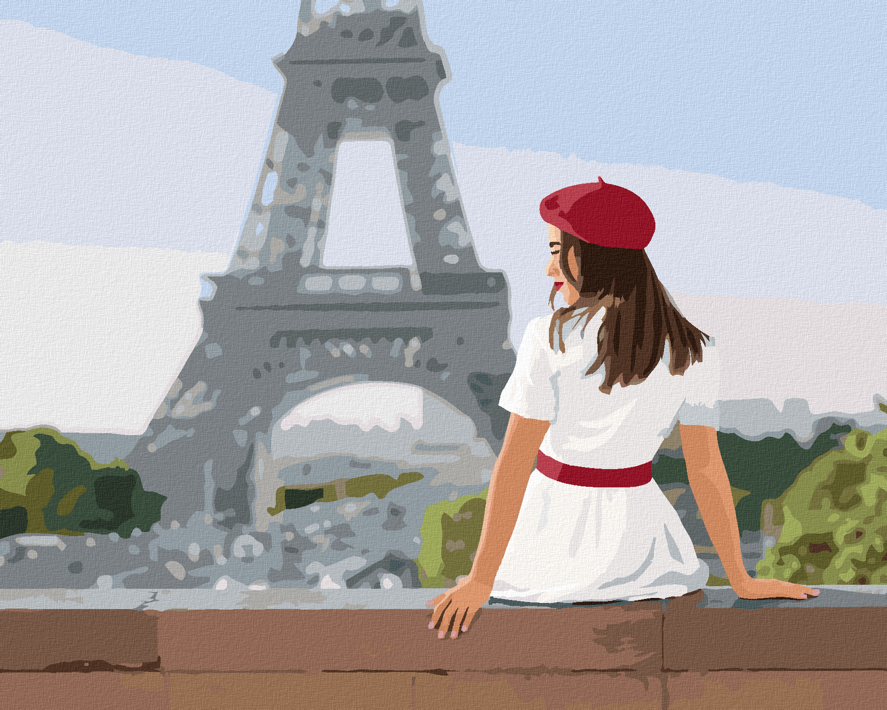 диамантени гоблени - ЖЕНА С БЯЛА РОКЛЯ И АЙФЕЛОВАТА КУЛА