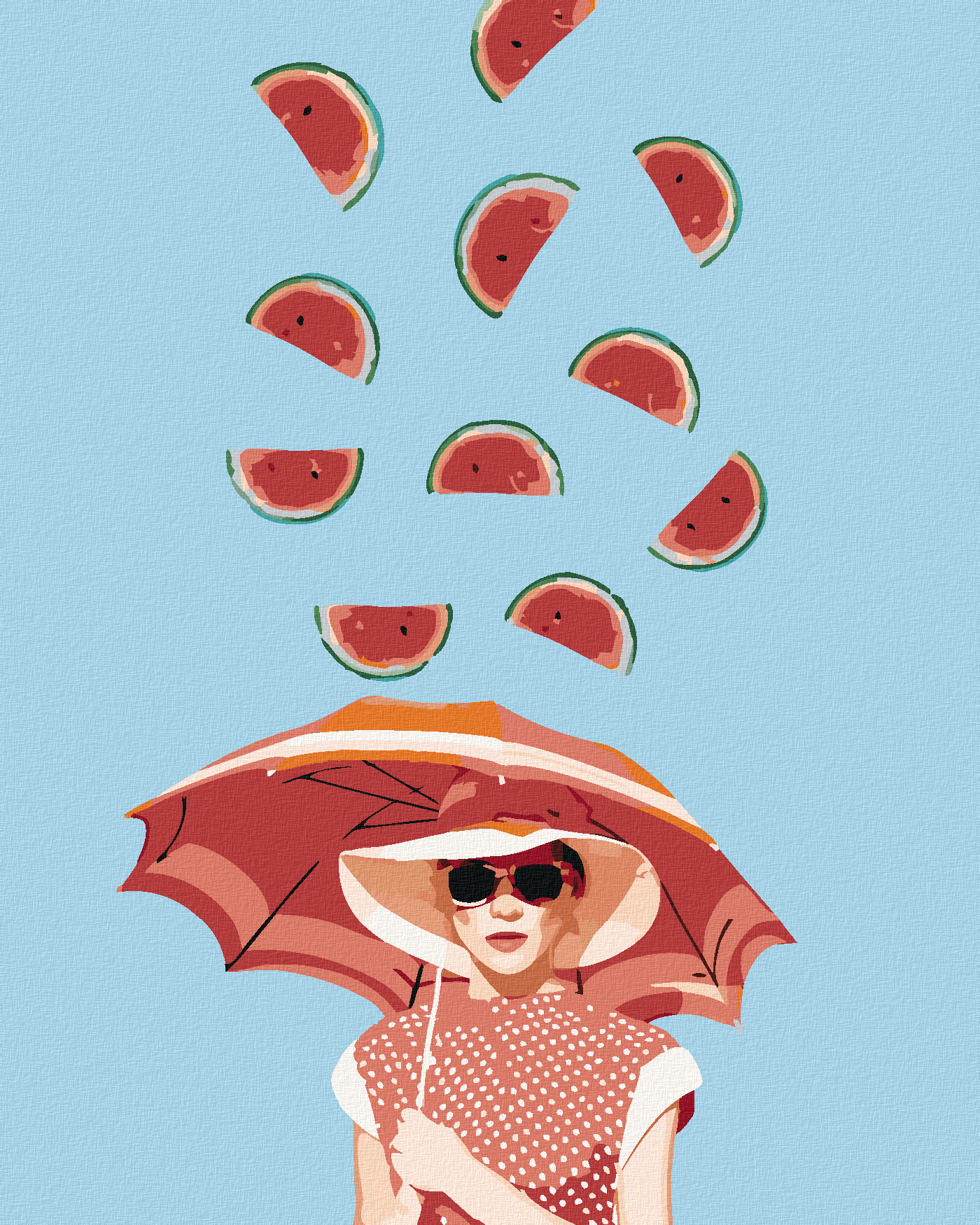 диамантени гоблени - ЖЕНА С ЧАДЪР И ПАДАЩИ ДИНИ