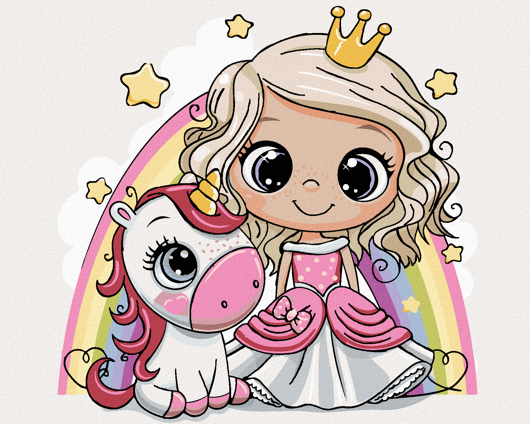 диамантени гоблени - МОМИЧЕ ПРИНЦЕСА И ЕДНОРОГ С ДЪГА