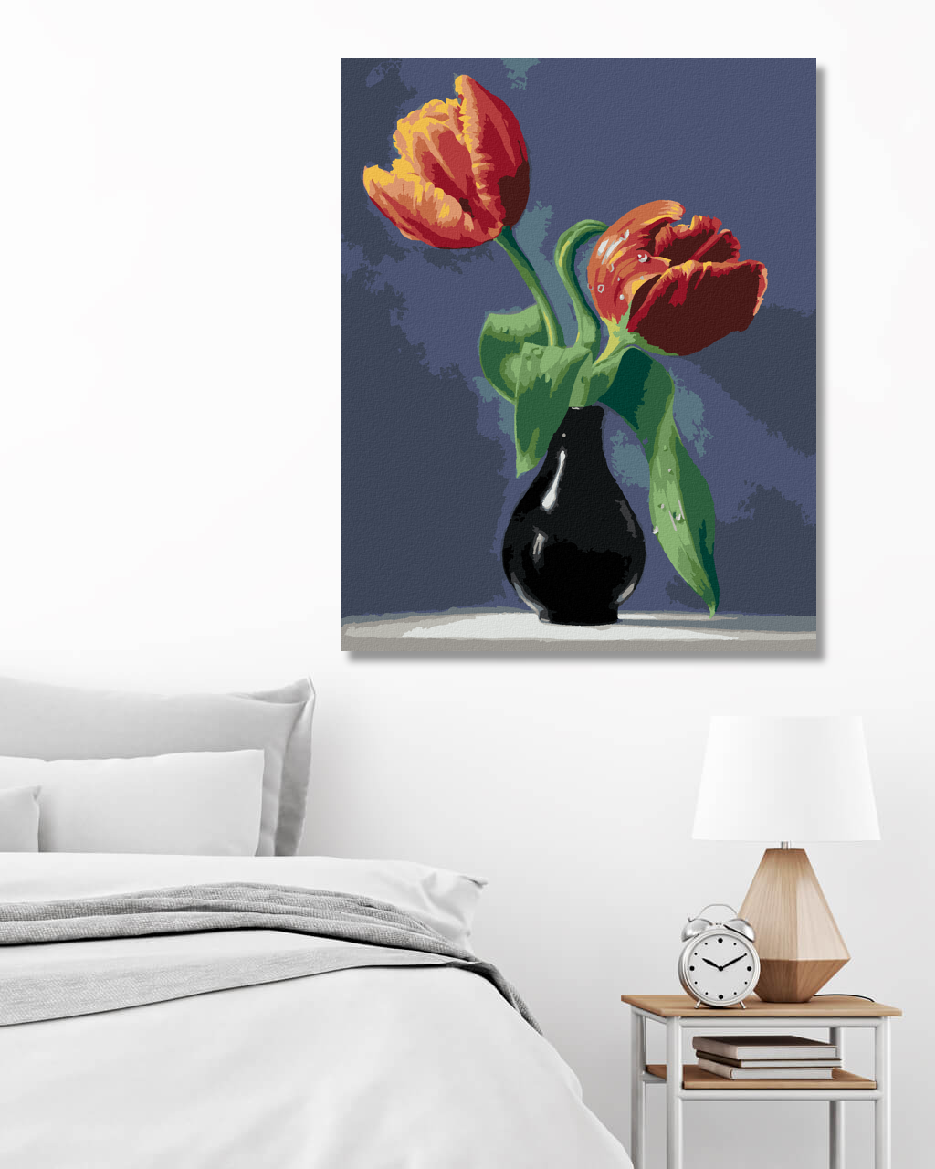 диамантени гоблени - НАТЮРМОРТ ОТ ЛАЛЕТА В ЧЕРНА ВАЗА ВЪРХУ МРАМОРНА ПЛОЧА (ПИТЕР ВАГЕМАНС)