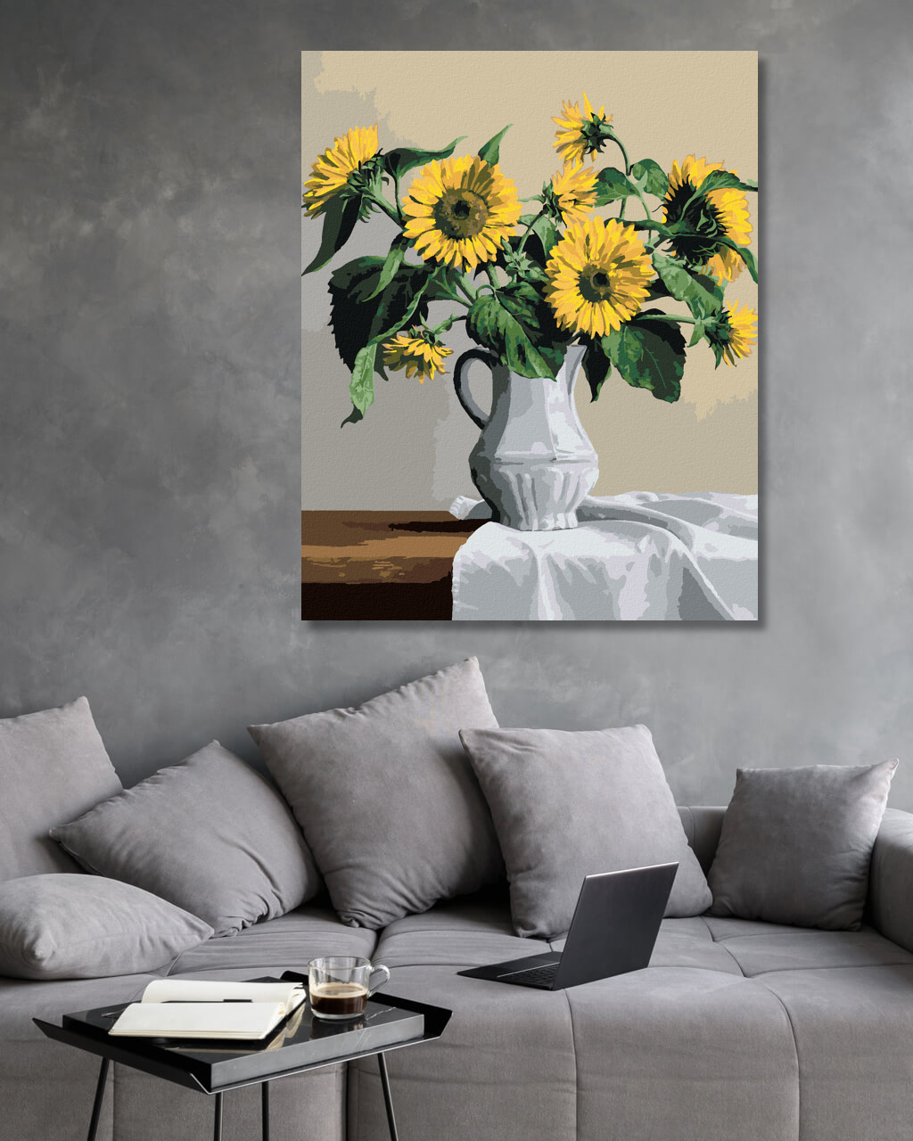 диамантени гоблени - НАТЮРМОРТ ОТ СЛЪНЧОГЛЕД В БЯЛА ВАЗА (ПИТЕР ВАГЕМАНС)