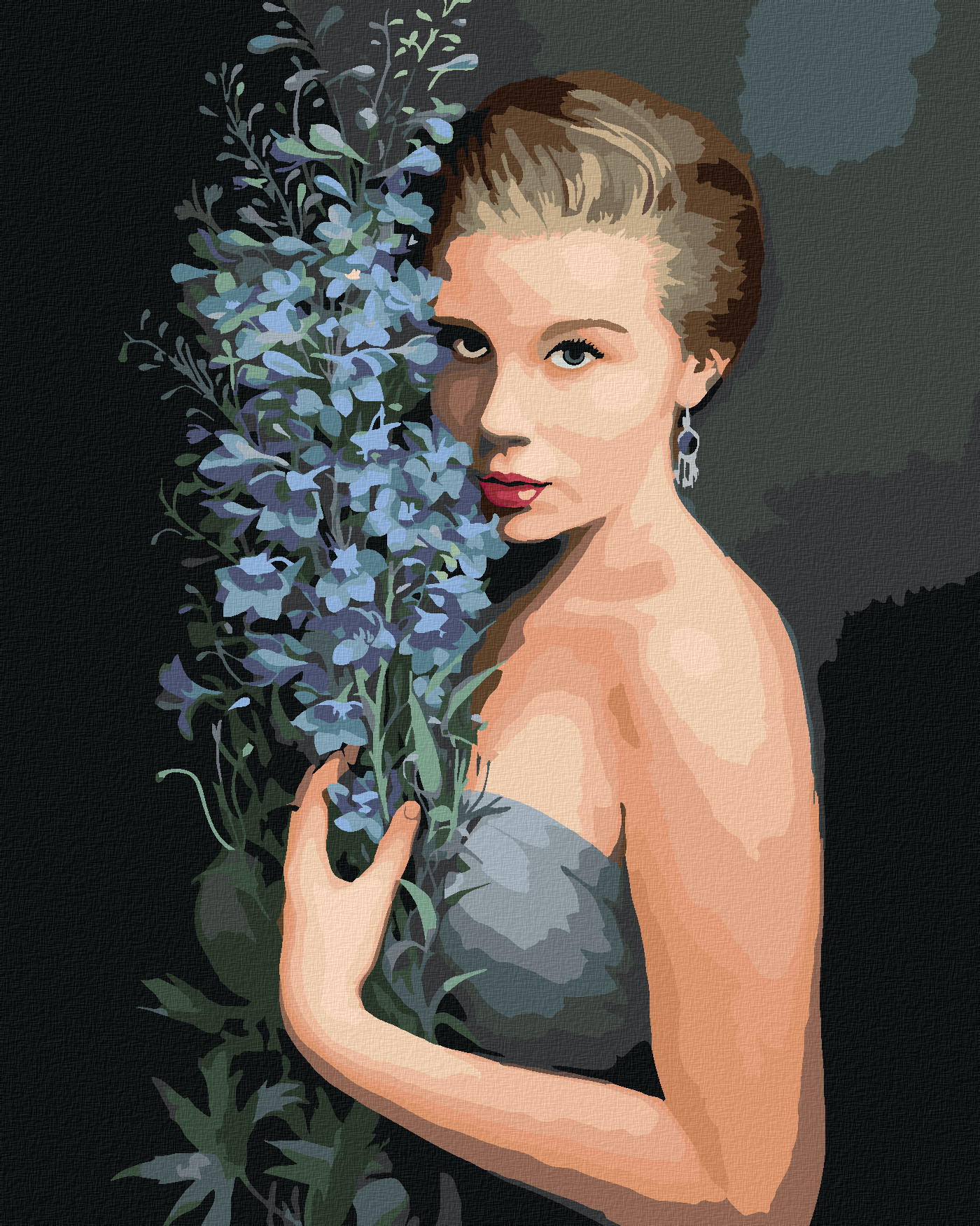 диамантени гоблени - РУСА ЖЕНА И СИНИ ЦВЕТЯ (ПИТЕР ВАГЕМАНС)
