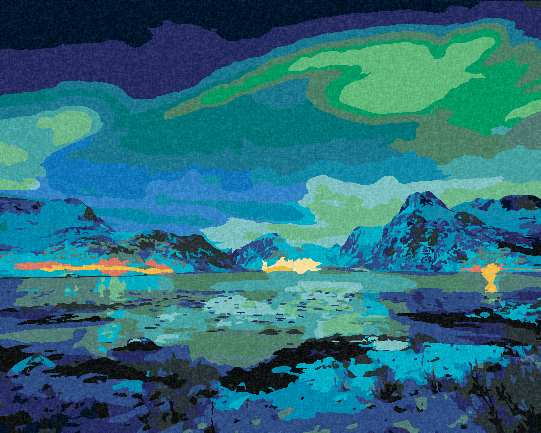 диамантени гоблени - СЕВЕРНО СИЯНИЕ НАД ПЛАНИНАТА