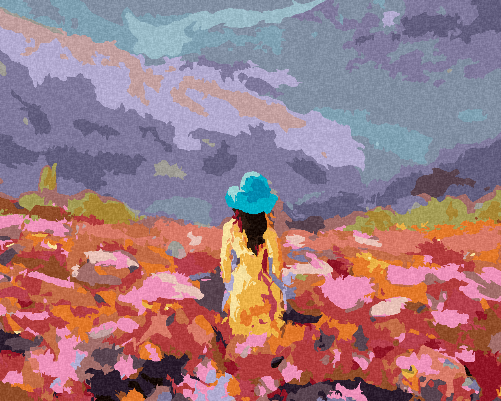 диамантени гоблени - ЖЕНА В ПОЛЕ ОТ ЦВЕТЯ