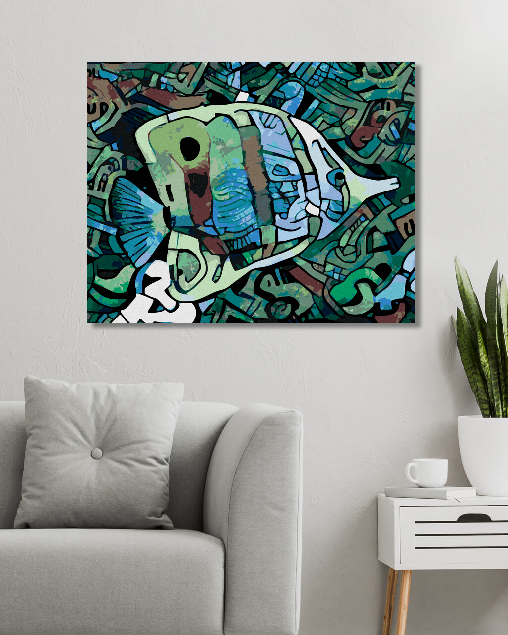 диамантени гоблени - ЗЕЛЕНА АБСТРАКТНА РИБА
