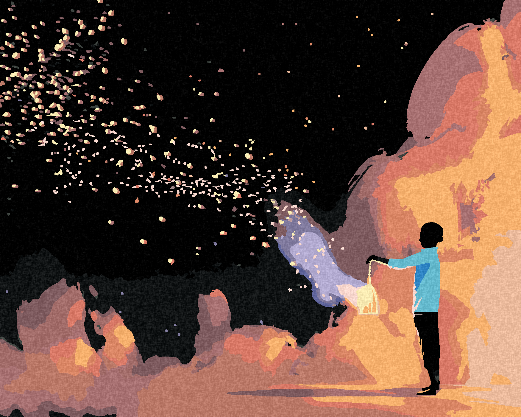 диамантени гоблени - МЪЖ, ДЪРЖАЩ КЛЕТКА СЪС ЗВЕЗДЕН ПРАХ