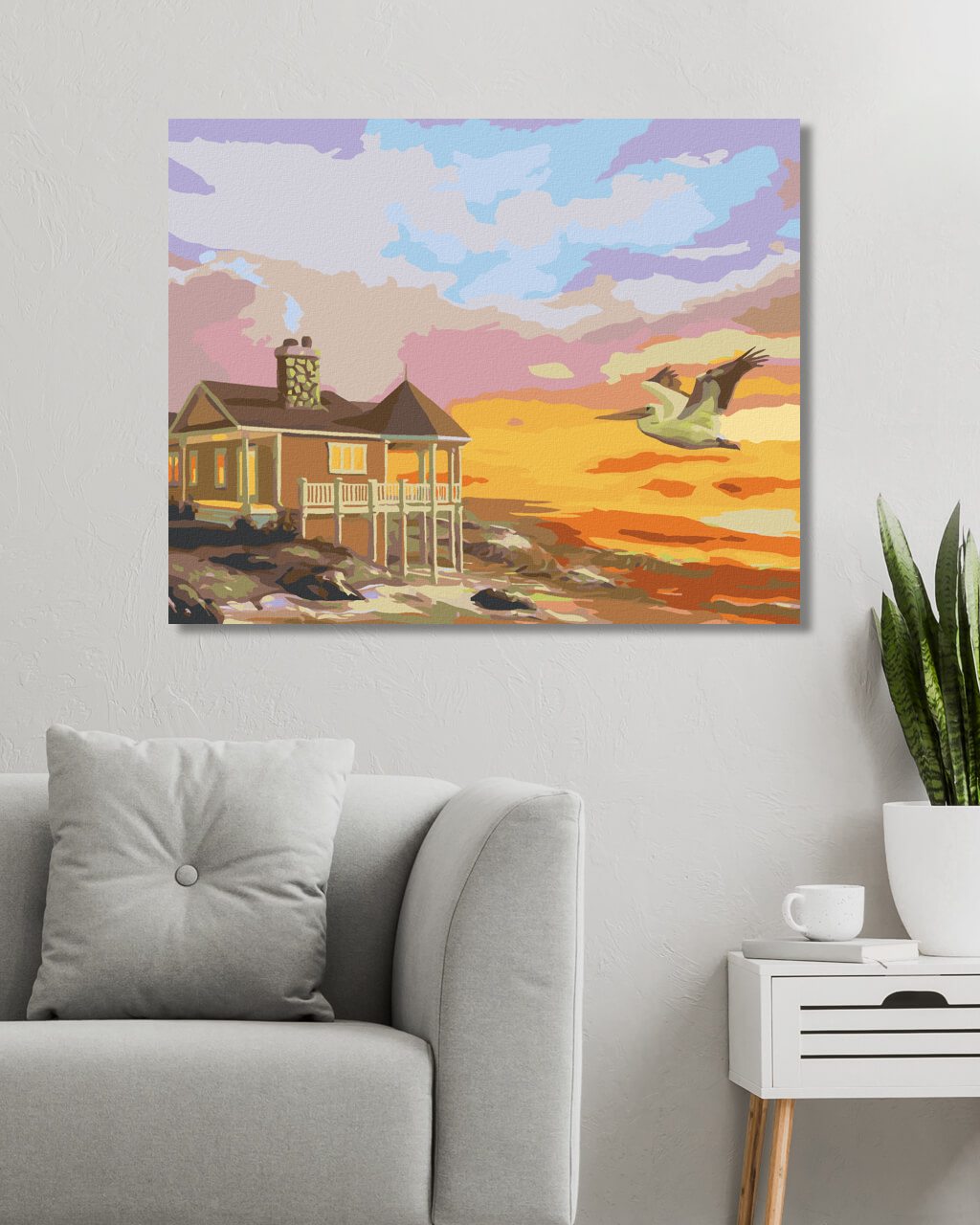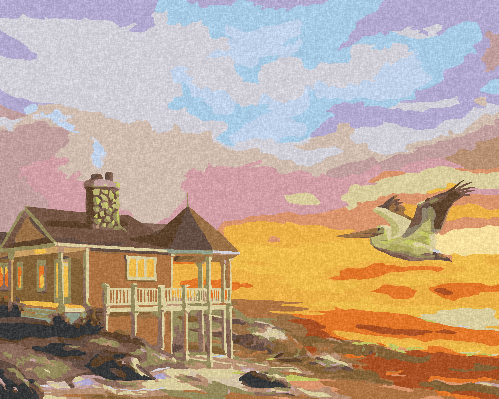 диамантени гоблени - ПЕЛИКАН, КЪЩА ДО МОРЕТО И ЗАЛЕЗ (Д. РЪСТИ РЪСТ)