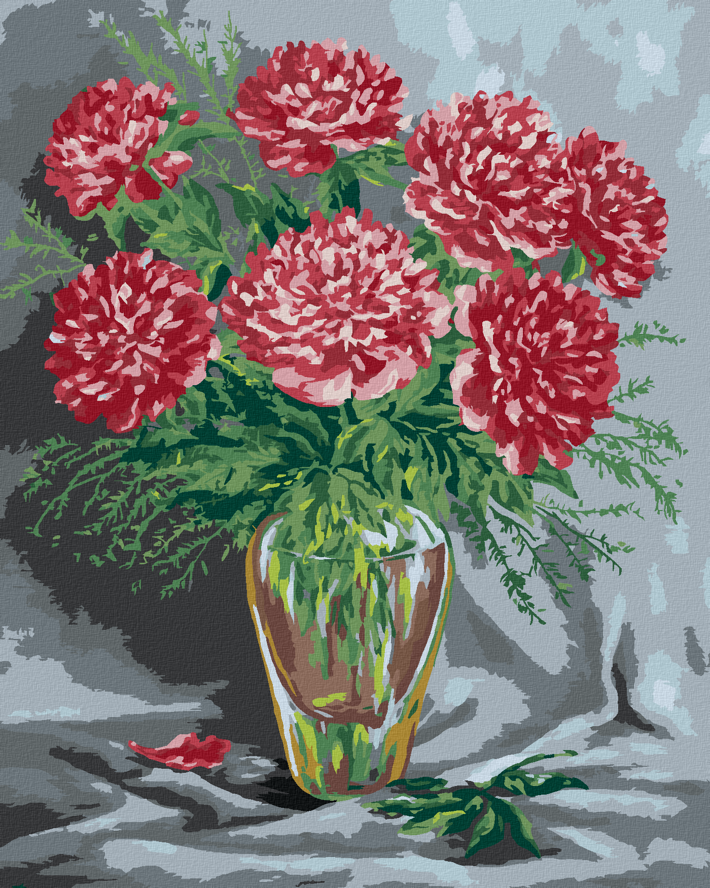 диамантени гоблени - РОЗОВИ БОЖУРИ В СТЪКЛЕНА ВАЗА