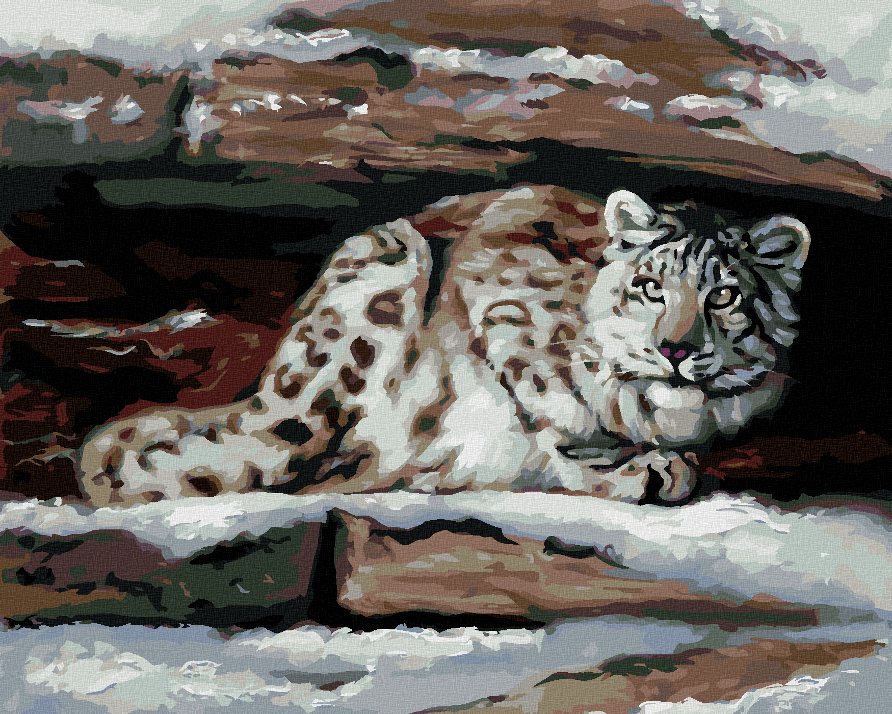 диамантени гоблени - СНЕЖЕН ЛЕОПАРД В УБЕЖИЩЕ (Д. РЪСТИ РЪСТ)