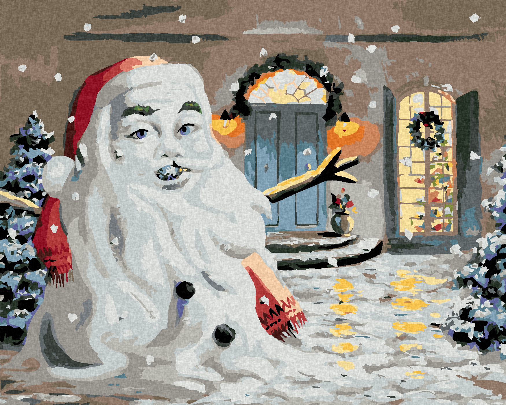 диамантени гоблени - СНЕЖЕН ЧОВЕК ВЪВ ФОРМАТА НА ДЯДО КОЛЕДА ДО КЪЩАТА (Д. РЪСТИ РЪСТ)