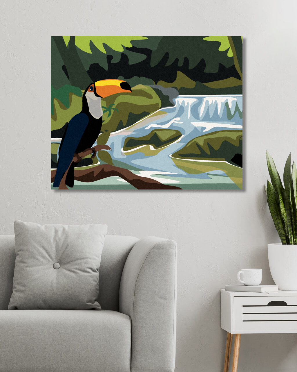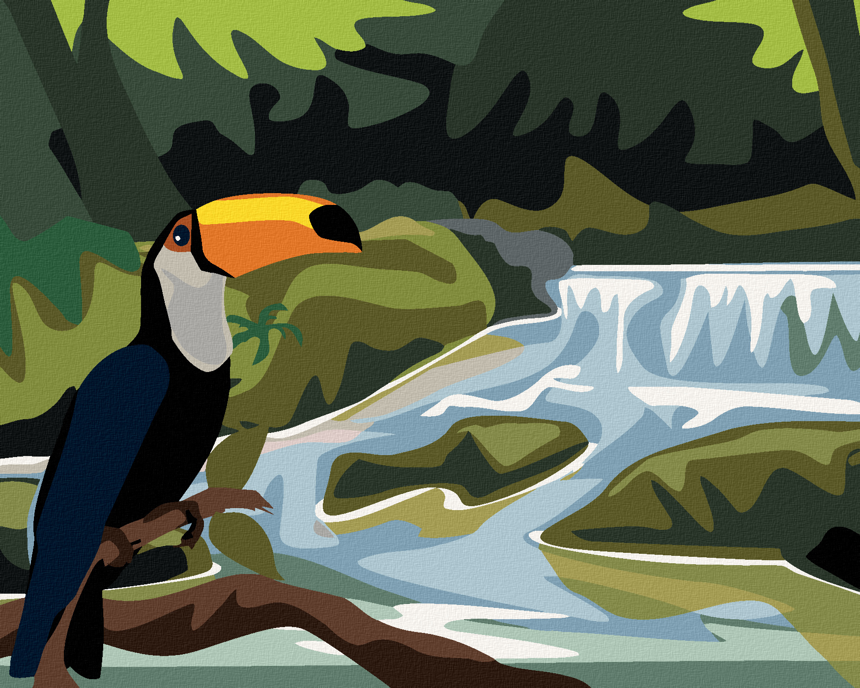 диамантени гоблени - ТУКАН С ВОДОПАД