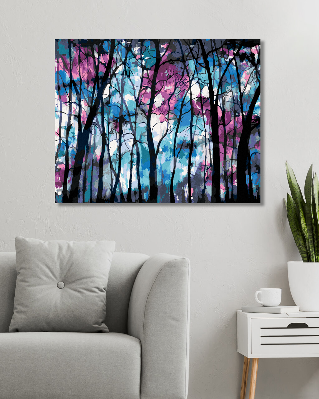 диамантени гоблени - ТЪМНА ГОРА СЪС СИНЬО-ВИОЛЕТОВО НЕБЕ
