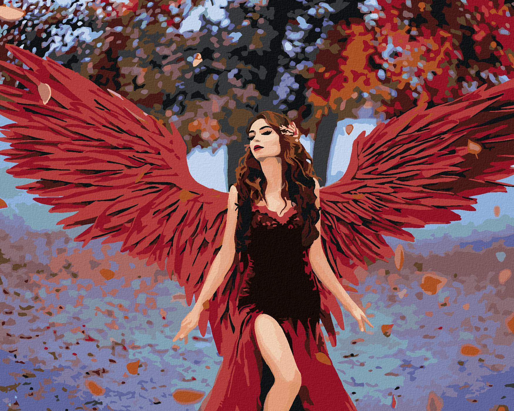 диамантени гоблени - ЖЕНА С ЧЕРВЕНИ АНГЕЛСКИ КРИЛЕ