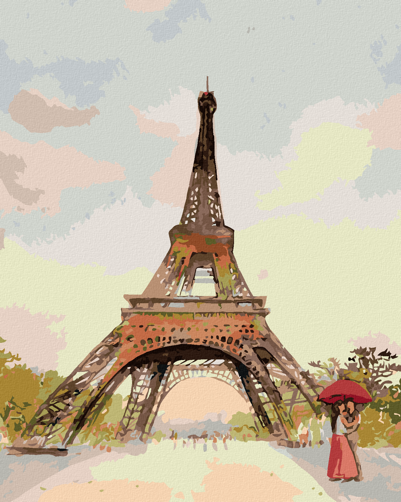 диамантени гоблени - АЙФЕЛОВАТА КУЛА И ЖЕНА С ЧЕРВЕН ЧАДЪР