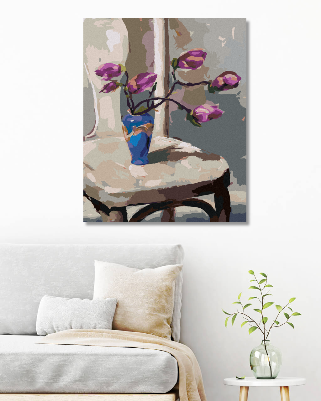 диамантени гоблени - МАГНОЛИИ ВЪВ ВАЗА НА СТОЛ